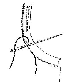 Hems appear to be minimal in size, mostly around 1 cm. Both gowns and hoods were finished through folding over the edge of the fabric, and held down with a double row of short stitches. The edge was then overcast. Sometimes the hem is turned over and the raw edge left without edge treatment. A common edge treatment is also to do rows of 'prick stitch', which looks like a back stitch or a modern machine stitch, in that each stitch comes right up to the next on both sides, but it's actually done as a running stitch.