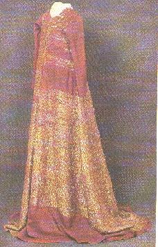 The gown was originally kept in Roskilde Cathedral, at the tomb of Queen Margrete who died in 1412. When Denmark was invaded by Sweden in 1658/59, the relics associated with her were removed and taken to Uppsala Cathedral, where they are today. The size of the gown suggests that the wearer was a young girl, and it is dated to the early 15th Century. While the gown is very closely associated with Margrethe herself, it may in fact have belonged to her daughter-in-law, Philippa of England.