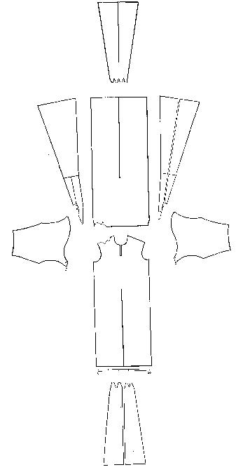 The cut of the shoulder area is unusual. The back is much wider than the front, which gives it quite a sofisticated, cape like look. The gores are pleated at the top.