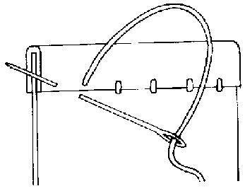 According to Norlund, the other type of ornamentation used in the Herjolfsnes garments is basic cord. There are several different types, from simple two-ply twist, one example of ten-ply, and most commonly plaited cord, usually of three-strand but in some cases six. (see the hemming page for details on this.) The cord was used for edging , lacing, etc. Garments could be edged around the neck, the sleeves, the lower edge and the fitchets. It makes for a very discreet decoration.