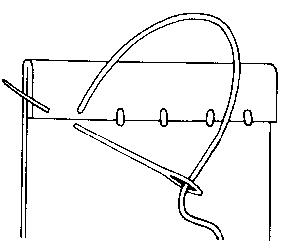 Hems appear to be minimal in size, mostly around 1 cm. Both gowns and hoods were finished through folding over the edge of the fabric, and held down with a double row of short stitches. The edge was then overcast. Sometimes the hem is turned over and the raw edge left without edge treatment. A common edge treatment is also to do rows of 'prick stitch', which looks like a back stitch or a modern machine stitch, in that each stitch comes right up to the next on both sides, but it's actually done as a running stitch.