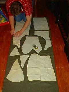 Martin cutting a pourpoint for his gambeson.